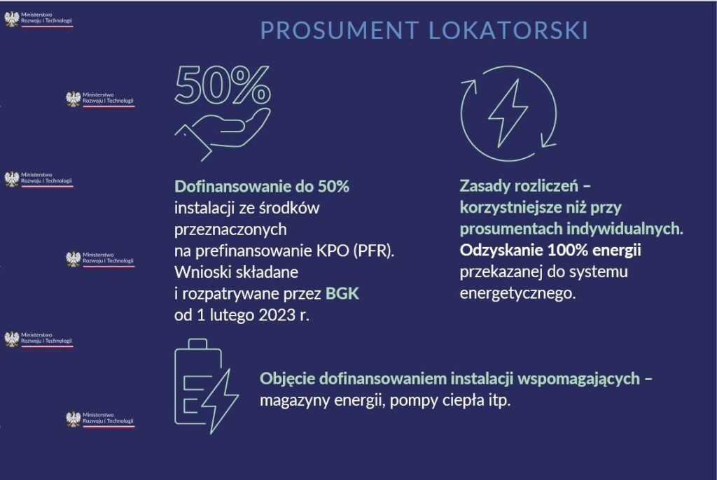 Prosument lokatorski - to nowa instytucja dla spółdzielni i wspólnot mieszkaniowych, dzięki której będzie można odzyskać 100 proc. wartości energii przekazanej do systemu energetycznego i otrzymać 50 proc. dofinansowania na instalację paneli fotowoltaicznych. Wprowadzenie takiego rozwiązania zapowiada Ministerstwo Rozwoju i Technologii jako kolejną zachętę do stosowania odnawialnych źródeł energii (OZE), w tym fotowoltaiki w Polsce.
